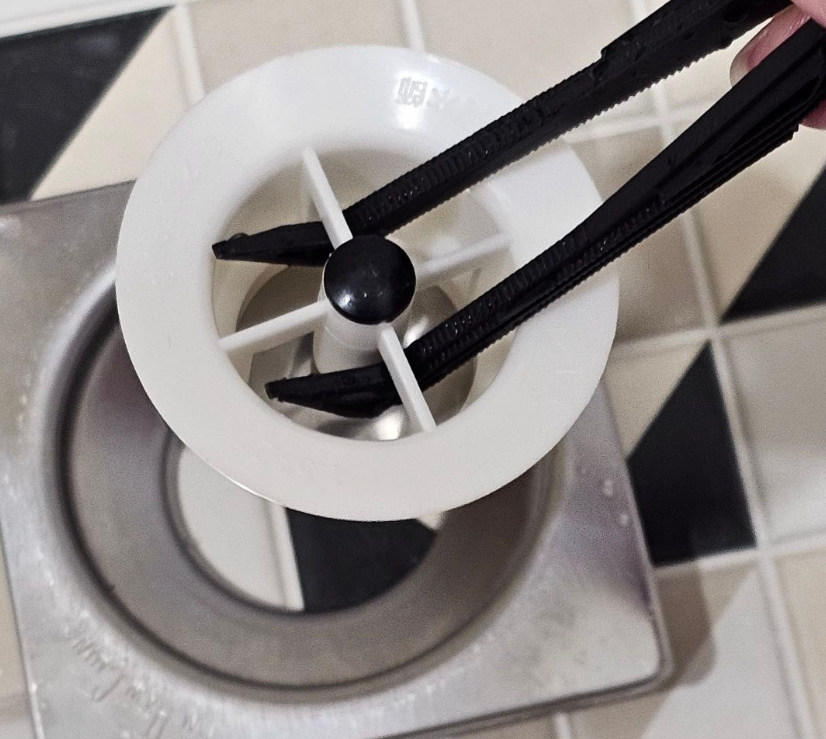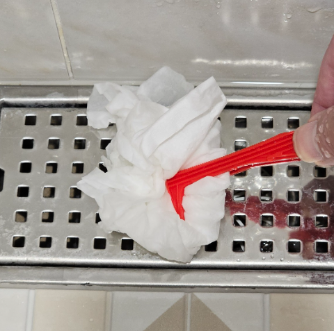 清潔浴室落水頭與下方的攔截片、水門,上面充滿了黴菌與髒汙,還是要用手去碰?